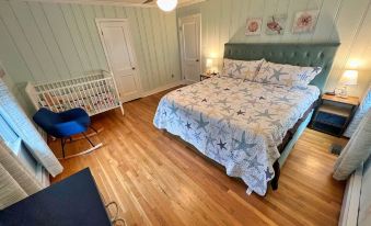 Family and friends gathered to meet the newest member of our family. The home is gorgeous and very clean. We enjoyed cooking in the kitchen and spent many hours catching up around the table. The little ones liked going up to the pirates watch to look out. Adults played the arcade games. Everyone enjoyed the pool to swim at any time of day or night. We had warm weather to swim and sit on the beach. At many times the river water was like glass, adding to a relaxed atmosphere. You should wear water shoes since the beach is made up of shells and pebbles. The owner was very responsive to questions. We hope to return again.