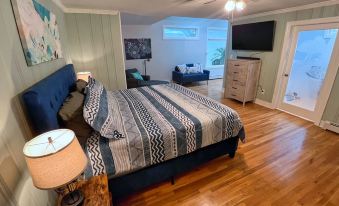 The property around the house is fantastic, there is a large front and back yard with a hot tub that fits 6-7, an outdoor fit pit with relaxing Adirondack chairs. The river is mere steps from the house. There is a wide private beach for guests, this is our favorite area since it's so relaxing and peaceful. Kids will love finding shells and sea glass in between building sand castles and swimming in the water. The water is really nice, clear with a sandy bottom. Enjoy sunbathing, picnics, relaxing or fishing off the huge dock. There is also a fisherman's walk at the end of the dock perfect for avid fishers. The decking material, HDPE, is new and keeps lower temps for bare feet in the hot weather. There is an outdoor shower off the dock, another outdoor shower on the side of the house and a foot washing station next to the hot tub/back entrance. There is also an external door that leads right into the pool room so you don't have to go inside first. Other fun amenities like kayaks, canoes, hammocks etc... will all be around for guests to enjoy.