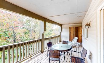 Cozy, comfortable, and well-located near the ski slopes, the golf course, and the heart of town, this one-bedroom condo at Stowe's Mountainside Resort is a wonderful home base in every season. No matter if the snow is falling outdoors or the autumn leaves are beginning to change, you'll love coming home each afternoon to a fully appointed kitchen, a light-filled living room that connects to an outdoor deck, and a snug den space where you can watch TV in the warmth of the gas fireplace. On the resort grounds, you'll even have access to shared amenities that include an indoor swimming pool, a hot tub, a tennis court, and a barbecue area with a communal charcoal grill.
