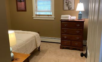 The Main level is on the second floor and has two bedrooms. One Bedroom with a Queen Bed, and one with a Full size Bed. The Bathroom on the main floor is a Marble tiled Bathroom.