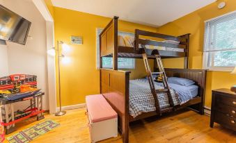 Also, this home features a large main bedroom on the main floor with a king-size bed, a private bathroom, and a baby crib. The main floor has a second bedroom, which is great for kids. This bedroom features two bunk beds, toys, and a TV for our young guests to enjoy. The lower level features two other large bedrooms and a full bathroom. The kitchen on the main floor has everything you need to enjoy your meals. Pots, pans, utensils, dishes, and spices are all provided for our guests. For our outdoor grill, we give a propane tank. We also offer linen and towels. The home has a free WiFi connection and cable TV. We try our best to make your stay as comfortable as we can. All you need to do is grab your clothes, friends, and family and visit our home!