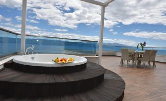 A dream view around the hotel. The hotel is very welcoming, spacious and elegant rooms, the balcony offers a view of Lake Ohrid.Nice and hospitable staff.If the hotel would put a bottle of water in the rooms, it would be appreciated.Varied and tasty breakfast.