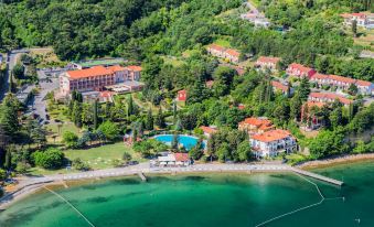 By the sea, at the foot of National Park Strunjan Salt panes. Beautiful resort "Salinera". From the sea, 300 m from the beach, in the countryside. For shared use: park 1'000 m2 (fenced), swimming pool, indoor pool (seasonal availability: 15.Jun. - 30.Jun. and 01.Aug. - 15.Sep.). Outdoor shower, tennis (16.Apr. - 30.Sep.) (extra), children's playground. In the house: reception, sauna (extra). Washing machine, tumble dryer (extra). Parking. Grocery 1.1 km, restaurant 200 m, bus stop 1 km, pebble beach, shingle beach, rocky beach 300 m, outdoor swimming pool, indoor swimming pool 200 m. Tennis 3.6 km. "Salinera A4+1", 3-room apartment 42 m2. Comfortable and tasteful furnishings: living/sleeping room with 1 sofabed, flat screen and air conditioning. Exit to the terrace. 1 room with 1 double bed (160 cm, length 200 cm). 1 room with 2 beds (90 cm, length 200 cm). Kitchenette (2 hot plates, dishwasher, microwave) with dining nook. Shower/WC. Heating, electric heating. Terrace 5 m2. View of the countryside. Facilities: Internet (WiFi). Parking at the house. 1 small pet/ dog allowed.