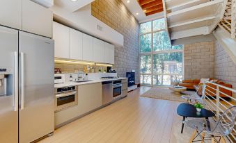Modern Loft-Style Townhouse in Los Angeles Find a true escape in the luxe comfort of this loft-style townhouse and create everlasting memories with your loved ones! This marvelous home away from home enjoys a prime location 500 feet from the Universal Studios entrance and just a short drive away from the beach, downtown, Beverly Hills shopping, Grove Shopping Center, and Universal Citywalk Hollywood. Conveniently positioned only five miles from Burbank Airport, this location allows easy access to and from the city. Nature lovers and fitness enthusiasts will be delighted to discover that the breathtaking Runyon Canyon is less than three miles away. Music aficionados will relish that the legendary Hollywood Bowl is just a stone's throw away. Film enthusiasts will be in paradise with the proximity to the Warner Brothers Studio Tour, where you can gain an exclusive behind-the-scenes glimpse of your favorite movies and TV shows. To top it all off, the world-famous Hollywood Walk of Fame is less than four miles away. You are right in the middle of all the action, yet quiet enough to get rest and be with your loved ones. As soon as you enter, you will first notice the gorgeous views through floor-to-ceiling windows. Relax in the inviting living area and take in the vista as you plan your next adventures or watch a favorite movie or show on the smart TV with streaming services. The open kitchen is a chef's delight - it's equipped with all stainless steel appliances and everything you need to prepare delicious homemade meals and snacks for the group. This townhouse enjoys three levels full of beautiful modern decor and comfortable spaces where you can unwind and rest. Additional perks include an on-site washer/dryer, a balcony, a desk, and a gorgeous soaking tub..