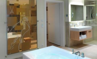 Dieses Hotel liegt sehr ruhig in einer eigenen Strasse. Ein großer Parkplatz ist vorhanden, ebenso wie E-Ladesäulen. Rund um das Hotel kann man spazieren gehen und auch in der näheren Umgebung sind kleinere Städte, die man besuchen kann. Das Hotel selbst bietet verschiedene Restaurants und ein reichhaltiges Frühstück mit allem was das Herz begehrt. Das Abendessen gibt es entweder als 3-Gang Menü oder vom Buffet. Beide Varianten waren sehr lecker. Eine kleine Bar gibt es ebenso wie ein Wellnessbereich. Es gibt eine Saunalandschaft, 2 Pools (einer ist nur ohne Kinder zugänglich) und die Option für Fitness, Kurse und Massagen. Die Zimmer sind mit allem ausgestattet was man benötigt, die Betten sind bequem. Das Einzelbett war allerdings etwas schmal. Das Hotel achtet auch auf Nachhaltigkeit.