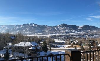 Step out onto the balcony from either the living room or kitchen to soak up the view.  If you are lucky you can have a birds eye view of our wildlife visitors - deer, moose or elk.