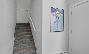 This beautiful and very clean place has comfortable beds and the layout is excellent! There are two living spaces with the garage being converted into an excellent ski room and rec room. It is just a short two minute walk to jump on the Burfield chair.