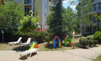 Family 3 Bedroom comfortable Apartment in Sunny Beach resort on the fourth floor with a lift. Great views from the big balcony to the street and the pool and garden. This comfortable apartment can accommodate up to 8 guests easily suitable for families. It contains 3 bedrooms. The master bedroom has a double bed, the other 2 bedrooms each contains 2 single beds, 2 bathrooms with toilet, a wide dining room with a sofa bed for 2 children and a fully equipped kitchen.