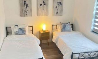 3 bedrooms: 2 single beds 1 queen bed and 1 king bed