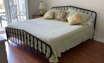 private bath and access to screened in balcony with breathtaking views of the water and golf course.