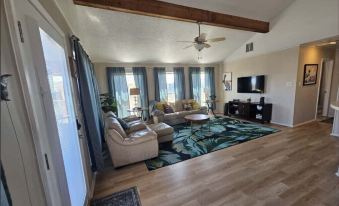Location is optimal for the beach life, inside is really nicely decorated. Easy to use kitchen and dining, comfortable living area and beds. Suggest maybe blackout curtains during hot summer months. Lots of windows are nice, just hard to keep cool. Maybe a few less pillows and more towels. Thank you for a great stay!