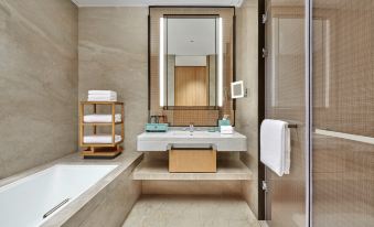 All the essentials and more are covered in our 315 modern, stylish and comfortable guest rooms and Suites, starting from 40 sqm and take in picturesque views of lake or city view. Refresh in the spacious marble bathroom with bathtub. All of our guest rooms are equipped with air-conditioning and high-speed Wi-Fi, generously-sized desk, a 55-inch LED TV with International TV Channels, and plush Hilton serenity bed.
