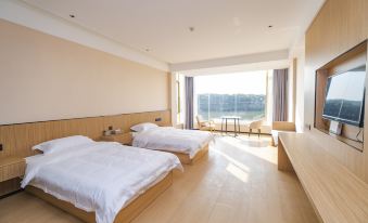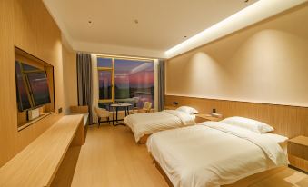 房間很大,也算乾淨,早飯能吃飽,味道還算能吃。所謂的旅遊項目,可以忽略不計,住一晚上還好吧,也就是睡一覺。所謂的廚具並沒有看見。窗户挺大,窗外一個水塘,空調聲音好好聽,轟隆隆的響了一夜。房間和圖片果然一模一樣!