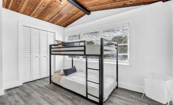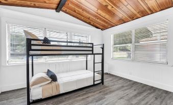 3 bedrooms: 2 bunk beds 1 queen bed and 1 king bed