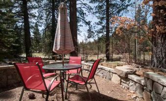 Private entrance to the studio, as well as access to the patio and grassy area beyond. Please avoid the golf course during golf season. This is my home when I’m in Tahoe, so we may cross paths outside in the driveway or on the street.