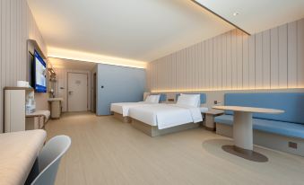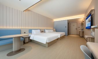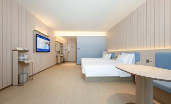 The hotel is version 3.51 of Huazhu's new product. The eye-catching new design interprets the aesthetic concept of "pragmatism" with low-saturation comfortable color matching and soft lines, intelligent high-tech equipment, creating a variety of self-service experiences, robot delivery, 24-hour laundry, high-looking stall chef's breakfast, presenting national flavor, one-click screen projection in the guest room, integrated on the back of the bed, one-click call the front desk, bathroom dry and wet separation, all-in open molding, the toilet adopts an integrated electric heating function, Wei customers bring affordable quality and a good design hotel.