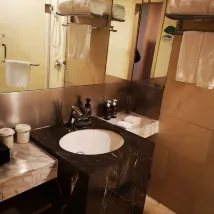 The hotel is good enough if you want something affordable but also near the airport. We booked a family suite for 3 people so it was quite spacious, but the aircon wasn't working well at first. We had to call the hotel's staff twice to help us fix it or arrange it. The hotel itself is quite old, there's not much guests in it. The elevator at the time we went was not working well, we had to take the stairs which smelled old and dirty, and also had to report to the hotel staff to speed up the maintenance. We had working elevator in a couple minutes later, but it was rushed and was only newly set up, so the floor was uneven. The hotel smelled old and smelled like cigarettes. The staff was mediocre. They did gave us an extra fan in case we still feel hot, since the aircon took time to cool up.