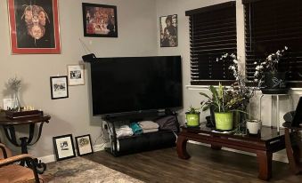 You will delight in our fully stocked kitchen, a cozy living room, and comfortable beds where you can unwind after a day of exploring. Stay connected with the free WiFi or immerse yourself in a good game of chess. Plus enjoy our free onsite parking. Outdoor seating is available at the Side of home with a small fireplace. No backyard access. Your space is yours only. No one else is in the home. Locked areas are for storage.