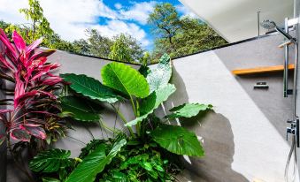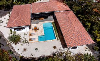 This is a tropical hide away is on a secluded lot. The lot is beautifully landscaped in harmony with the natural surroundings which attracts monkeys, birds and more.