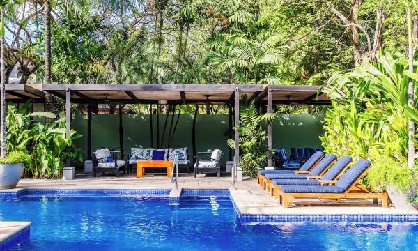 The villa is located in a quiet area of Tamarindo, up on a hill, but within a short walking distance of the main street, restaurants, and attractions.