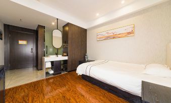 房間整體感覺還行。裏面的設施也比較齊全。房間的浴室和衞生間有大學裏麪的感覺。附近也有比較多的飯店,還可以到1點退房很好。