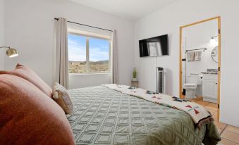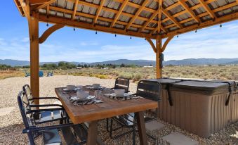 Beautiful new construction 2 bed home with ample outdoor areas to enhance your memories. Dubbed Casa de Sol for the expansive sun sets you'll enjoy from the front porch or the back yard. From the fire pit and comfortable Adirondack chairs to the gazebo covering the hot tub and outdoor dining, the back yard has been perfectly situated to maximize the expansive views, sunrises and sunsets. The primary bedroom features an on-suite bath, large window and huge walk-in closet. The secondary bedroom also features a large window and walk-in closet. Radiant in-floor heat and electric fireplace insert and all the insulation of new construction keep the home cozy in the winter and the classic southwestern saltillo tile and abundant windows and fans keep the home comfortable in the warmest summer months. Amenities include a fully appointed kitchen and outdoor grille for all of your cooking plans, a one-car garage to park out of the elements, front and rear covered patios to enjoy the outside in any season, and WiFi and Smart TV to complete your relaxation or productivity needs.