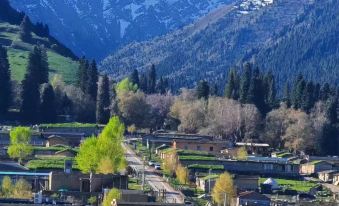 在去後山路上,有自己的停車場,整個民宿視野對着瓊庫什台村,去村裡吃飯還有去烏孫古道都很方便,房間裏的窗户對着雪山,服務很熱情,攻略都給的很中肯,下次來還住這裏