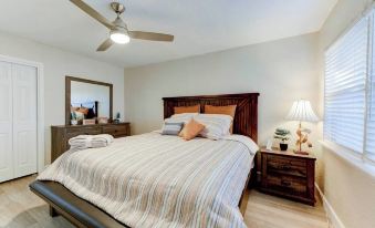We were getting work done on our house and needed somewhere near by to stay to be able to run back and forth. This property was perfect! It has plenty of rooms for our family and our fur babies as well. The property has a big beautiful patio that was wonderful to just sit and relax and enjoy the day/night. The rooms were spacious and beds were plenty comfortable. Each bed came with a mattress protector to ensure our safety and the beds. The kitchen gave you plenty of options for cooking needs, he provided some pots and pans, but not very many. So if you have a need for multiple dishes, I would recommend getting some extra. There is a attached garage to park your vehicle if you desire. The driveway is plenty spacious for your vehicles. We comfortably fit a truck and a van. The showers were very spacious and had great pressure! The only suggestion i would make for them, would be handles for those not so steady. I loved there was a seat and adjustable shower head for the shorter members of our family :) Beware of the step to the main bathroom. The house was updated with nice remote fans/lights and also had adjustable night light options for those who do not like the complete dark. The Host was very good about communicating and helping us get everything sorted so we were comfortable. I would highly recommend staying with Ken and any of his properties because I know he goes above and beyond to make things right! You wont be disappointed