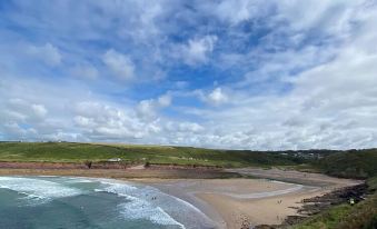 Benefits from a large meadow on site with newly planted orchard and wildlife pond, great for exploring and dogs to run off lead. Outdoor washing station also available to guests for mucky dogs, sandy wetsuits, dirty boots etc.