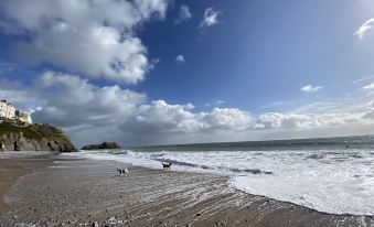Benefits from a large meadow on site with newly planted orchard and wildlife pond, great for exploring and dogs to run off lead. Outdoor washing station also available to guests for mucky dogs, sandy wetsuits, dirty boots etc.
