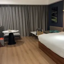 The room is very clean and quite large. It has intelligent voice control and the front desk is very attentive. There are also many restaurants around.