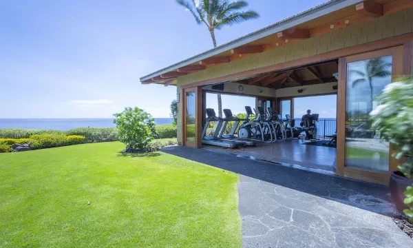 Amenities: Our home is located feet away from the Ocean Club, Hali’i Kai’s private oceanfront clubhouse. The clubhouse includes a picturesque, multi-leveled lagoon style pool, with sweeping views of the Pacific. Plenty of lounge chairs and aqua loungers line the pool deck, and the concierge desk offers towels and ice cold lemon water to make your lounging experience relaxing and enjoyable. The pool area also includes a sand-bottom Jacuzzi, well-maintained restroom facilities, an outdoor showering area, outdoor BBQs, and an undercover sitting area providing the ideal atmosphere for enjoying a good book. The Ocean Club also serves up lunch and dinner at the Ocean Bar and Grill. The friendly bartenders provide excellent service (try the ahi poke and the lava flow) and are also a wealth of knowledge, providing insider perspective on restaurants and activities on the island. If you crave a sweat session to start the day off on the right foot, the open air, newly-renovated gym cannot be matched. Treadmills, elliptical machines, and exercise bikes, along with a full rack of free weights provide an excellent workout, while taking in the serene ocean views. Whether your intention is to sip on a tropical drink poolside, or play with the family in the rejuvenating, saltwater pool, the Ocean Club is the perfect place to spend your vacation. The grounds also include tennis courts and a sport court, for those who crave a bit more action.