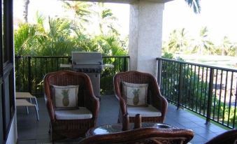 This tastefully decorated Villa's is one of the most requested units in the complex. The Villa has two large master suites, both with soaking tubs and separate showers, plus a powder room, fully stocked kitchen, living room/dining area and a covered lanai with a wet bar. The total living space (including the lanai) is approximately 2000sf. The villa can sleep five guests with 1 king-size bed, 1 queen size and a chase in the living area could be used for a child. The private wrap around lanai is secluded and is a perfect place to just relax or enjoy a romantic dinner while watching the breathtaking sunset.