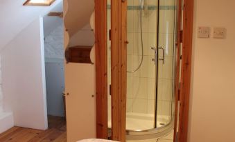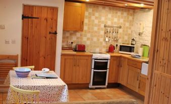 There is a small rear patio with picnic table with a shared grassed area beyond. Walk across to the fields to the coastal path. Use of tumble dryer, available on request. There is parking in the shared courtyard for at least three cars.