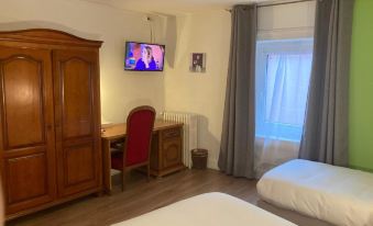 Hôtel atypique. ! Literie confortable et pas de bruit la nuit. La chambre que nous avons eu était refaites avec les moyens du bord. Pas de fioritures juste du pratique. Si vous aimez les Hotel « classe » faites demi- tour. Restauration classique pour un we du 15 août. Personnel sympathique, pas compliqué le boss s’occupe de tout.