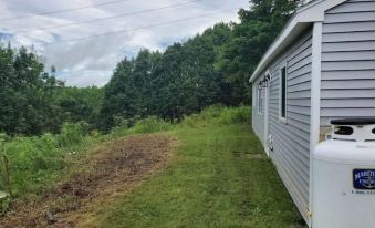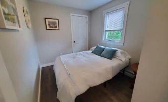 Guests have access to the entire property including the outside space both front and a small back yard. The house has great natural lighting with a large picture window overlooking the backyard and wooded area. There is one step to get into the house. All main areas, kitchen/dining room, living room, bathroom, and both bedrooms, are on the same level.