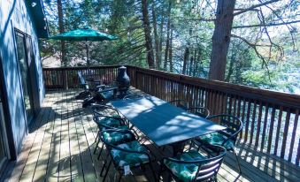 Large back decks and a patio to enjoy the lakefront breezes, sunsets, and stars here in the Catskills. Deck includes a grill and table seating for 8. The patio under the deck includes a hammock. There is an outdoor fireplace on the deck.