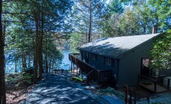Stylish lakefront home with large deck, covered patio, and indoor sauna. Private dock includes kayaks for your enjoyment. Indoors you will discover modern details and a wood stove for those cold winter nights. The lower level has an indoor sauna and den with TV. Plenty of space for your group to enjoy their time in the Catskills.