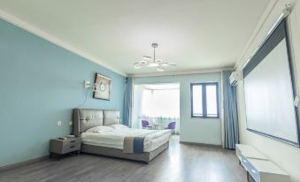 風景真的好好,還有一個小桌,跟朋友出去還能在桌上吃個飯,簡直不要太方便,老闆人也特好,給我們免費升級了房型,投影屏幕也嘎嘎清晰高清的嘞