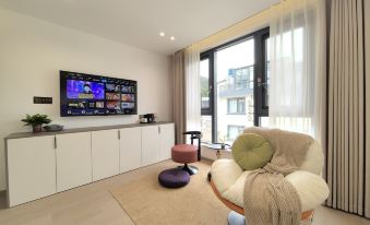 Built with natural wood, stone, and bamboo, the interior blends modern simplicity with Zen-inspired elegance. Each room features a viewing balcony or floor-to-ceiling windows, inviting the waterfall and mountain scenery right into your space.