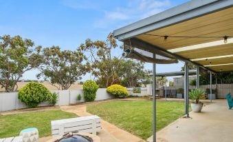 Only 1.5 hours from Adelaide, this split level home is a short walk, and even shorter drive from the beach. Located one street back from the beach, you can see the water from the front deck, and watch the sun set over farmland from under the back pergola. With a full functioning kitchen, including a massive gas oven and dishwasher, air conditioning, wood fire, washing machine and roomy lounge to relax on, this is your home away from home. The King size bed in the spacious Master Bedroom gives a sense of luxury, with the 2nd bedroom having a Queen size bed and the 3rd bedroom having 2 single beds (and 2 trundle beds) for the kids. Ample room in the backyard for the kids to run around and play, and the adults can relax by the fire pit at night. Head to Ardrossan to walk the jetty, find a playground or just relax with a coffee at Wilmas on the Yorke cafe. Ardrossan also has takeaway food options, IGA supermarket and Bottleshop, just a 5 minute drive away.About pets:Pets allowed: dogs (limit 1 total).We request that pets do not go on beds..About checkOut:Check out before 10:00 AM.About children:Children allowed: ages 0-17.About checkIn:Check in after 2:00 PM.About smoking:Smoking is not permitted.About events:No events allowed.