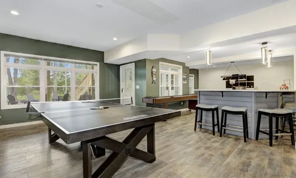 Forget your worries in this spacious and serene space. Lake front 9 bedroom/5.5 bath luxury house loaded with amenities and games! Have fun with the whole family at this magnificent estate. Whether you are looking for a weekend ski getaway or a week long family reunion, this property has EVERYTHING you are looking for! We have spared no expense when it comes to your vacation.About pets:Pets allowed: dogs less than 50 lbs per pet (limit one pet total).About checkOut:Check out before 11:00 AM.About children:Children allowed: ages 0-17.About customRules:Guests agree to swim and use lake and hot tub at their own risk..About checkIn:Check in after 4:00 PM.About smoking:Smoking is not permitted.About minBookingAge:Minimum age to rent: 25.About events:Events allowed: family gatherings and birthday parties.Maximum event attendees: 20.