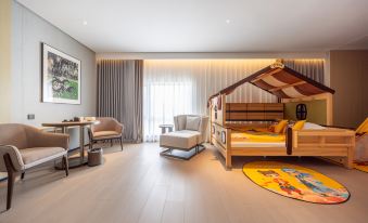 房間非常的大 且設施非常先進 ,雖然五樓親子房在洗衣房對面 ,但還行 沒聽見什麼動靜。畢竟新酒店進屋有點味道打開新風系統立馬就聞不見了。早餐還挺豐富,略涼保温需要加強。用餐環境高大上。老母親説比住的希爾頓還好。
