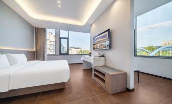 來桐廬旅行偶然發現這家新開酒店,真心推薦給計劃來玩的朋友,酒店靠近桐廬新老城的富春江連接大橋,交通比較方便,夜晚可以步行看夜景,離遊船碼頭不遠,酒店樓下店家比較多,吃飯和交通都非常方便,門口就有共享單車,酒店設施新,衞生乾淨,老闆人很好,服務態度好