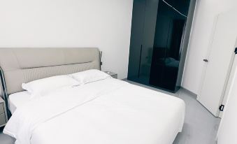 房間是兩室一廳的套房,乾淨整潔,設施齊全,有大冰箱、洗衣機還有廚房。有電梯,停車方便,離高速路口很近。
