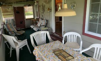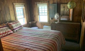 This vintage cottage has 2 bedrooms (1 queen/ 2 twin), 1 bath that sleeps a maximum of 6 (sleeper sofa in the living area). Modern amenities include cable/Smart TV, DVD player , wi-fi and A/C unit. Microwave, gas stove and refrigerator in kitchen along with gas grill.