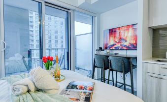 Stylish Downtown Stay | 251 Jarvis St, Toronto Experience the energy of downtown Toronto at this modern, fully furnished unit located just steps from the city's top attractions. Nestled in a vibrant urban neighborhood, this suite places you within a 10-minute walk of CF Toronto Eaton Centre, Yonge-Dundas Square, and easy transit connections throughout the city. Unwind in a bright, air-conditioned space featuring a fully equipped kitchen with a full-sized fridge, oven, microwave, and in-unit washer/dryer — perfect for extended stays or work trips. High-speed Wi-Fi keeps you connected throughout your visit. After a day of exploring the city, relax on comfortable beds with soft, hotel-quality linens designed to help you rest easy. Whether you're visiting for business or pleasure, this unit combines convenience and comfort in one of Toronto’s most walkable neighborhoods. A virtual front desk ensures a seamless, contactless check-in experience.