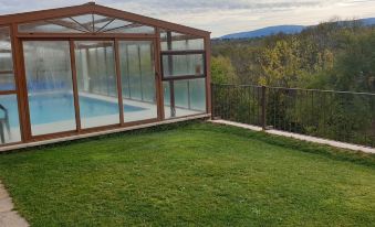 Rural house of very exclusive, with capacity for 10 people. Two rooms of 60m2. Dining room, two kitchens, 1200m2 garden area with heated pool, orchard, garden furniture, wood oven, built-in barbecue, garage ...