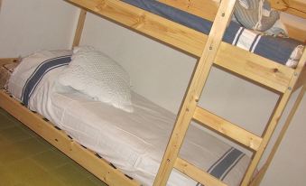 The house is made up of a bright living area with a balcony, a separate kitchen and a sofa bed, a double bedroom with a large wardrobe, a bedroom with a bunk bed and a bathroom designed by the owner with hand painted and sanitary ceramic Devon & Devon.
