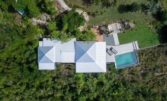 The original house was severely damaged by category 5 hurricane Irma in September 2017 but has now been completely rebuilt to an even higher standard than before. We took the opportunity to make some major improvements and upgrades creating new spaces and featuring all new high end appliances, equipment and furnishings. The result is an aesthetic and highly individual dwelling that delightfully complements the spectacular location. The house is simple, comfortable and very well equipped with accommodation consisting of one bedroom, a bathroom, and a kitchen / living room together with a large covered veranda, a brick courtyard and wooden decks around an infinity edge pool and hot-tub area.